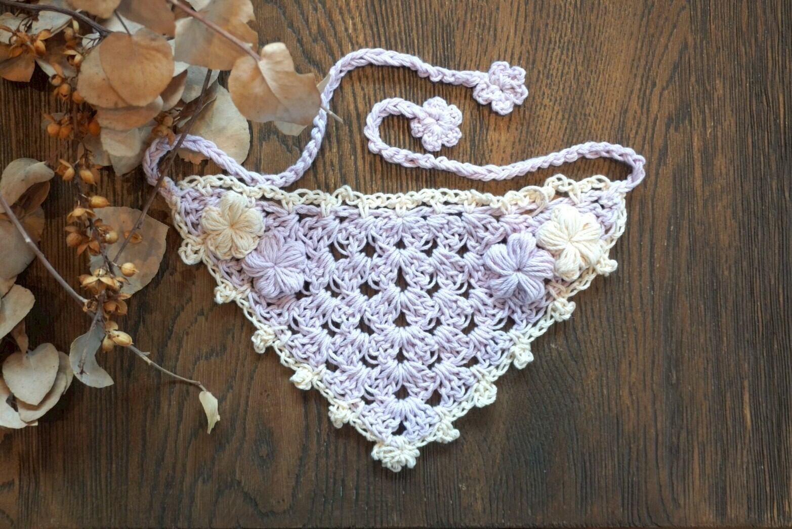 柔らかい毛糸で丁寧に編まれたワンちゃん用バブーシュカです。スタイにも◎