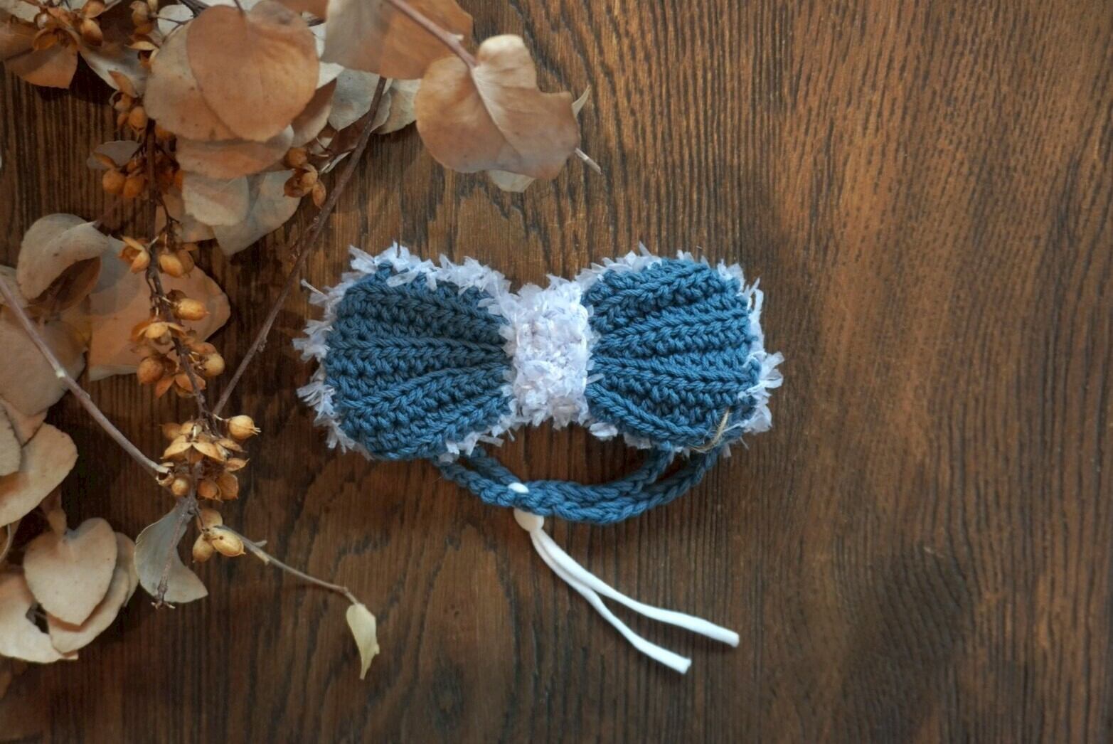 柔らかい毛糸で丁寧に編まれたワンちゃん用リボンです。蝶ネクタイとしても◎